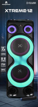 MPD25XB - EXTREME 12- MaxPower 12" X 2 Karaoke Bluetooth speaker with different LED light modes & heavy bass