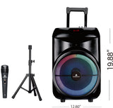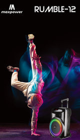 MaxPower 12" Karaoke Bluetooth Trolley Speaker with LED Lights & Adjustable Stand