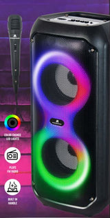 Introducing the MPD425-GROOVE Bluetooth Speaker with mic for karaoke, built-in FM Radio, and dancing LED lights.