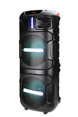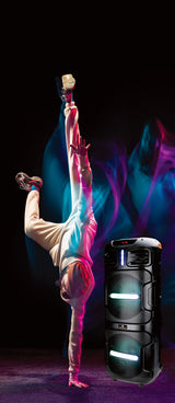Introducing the MPD522-RUMBLE 12 MaxPower portable Bluetooth speaker, perfect for all your karaoke needs. Dual 12" Woofers which gives a very clear and crystal sound. This speaker features comes with a microphone perfect to have a fun karaoke night with friends or family. With its sleek black color and portable design, you can take the party with you wherever you go. The MPD522 MaxPower is loaded with features including Bluetooth connectivity so you can connect to your phone or any smart device. This speaker is also compatible with karaoke systems and musical instruments, making it a versatile addition to any setup. MPD522-Rumble 12 also has a built in FM Radio so you can tune in your favorite radio station. Rechargeable battery that can last up to 6 hours makes it perfect to take it anywhere on the go, specially with the wheels on the bottom, easy to move it around anywhere!