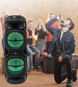 MPD528-ONYX 8 Dual 8" Woofer Portable FM Bluetooth Party Speaker Heavy Bass Sound With Mic